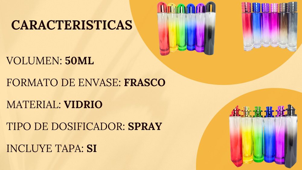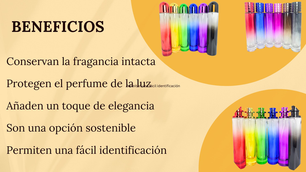 Presentación atractiva: El diseño y la variedad de colores hacen que estos envases sean ideales para exhibir tus perfumes en tu tienda, boutique o perfumería, captando la atención de todos y aumentando el interés por tus productos.